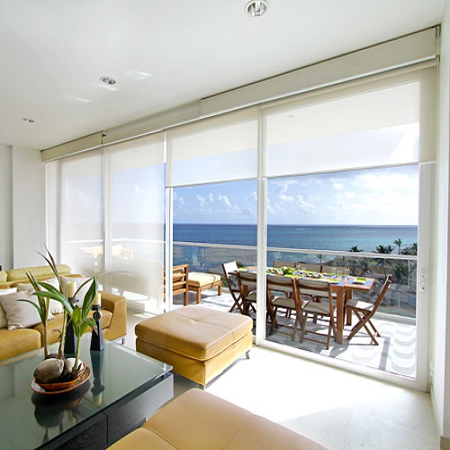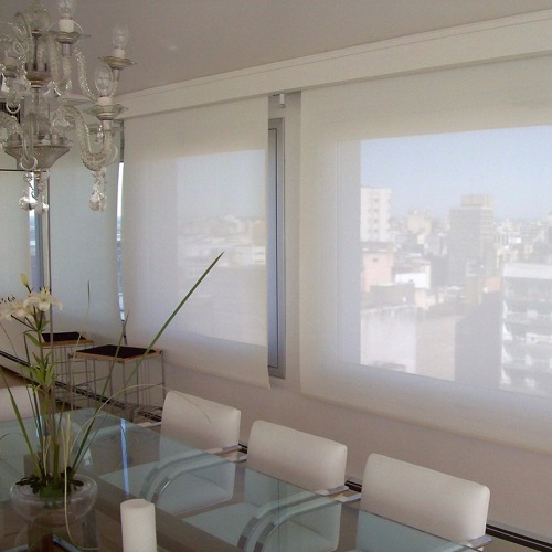 Es un sistema de cortinas enrollables fabricado con una mezcla de PVC y poliéster (o fibra de vidrio). Su característica principal es su tejido técnico microperforado, que permite ver hacia el exterior sin que te vean claramente desde afuera durante el día.